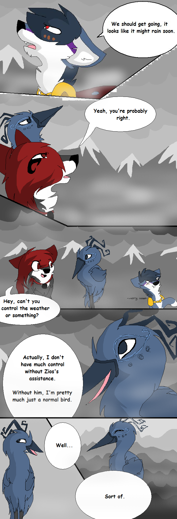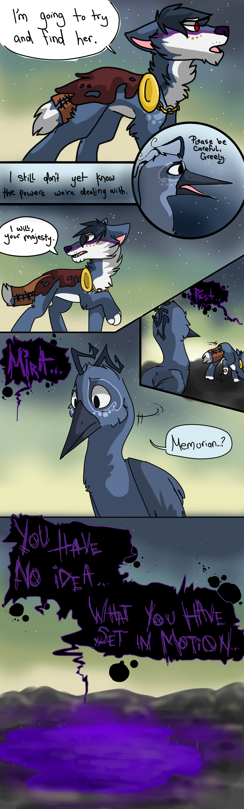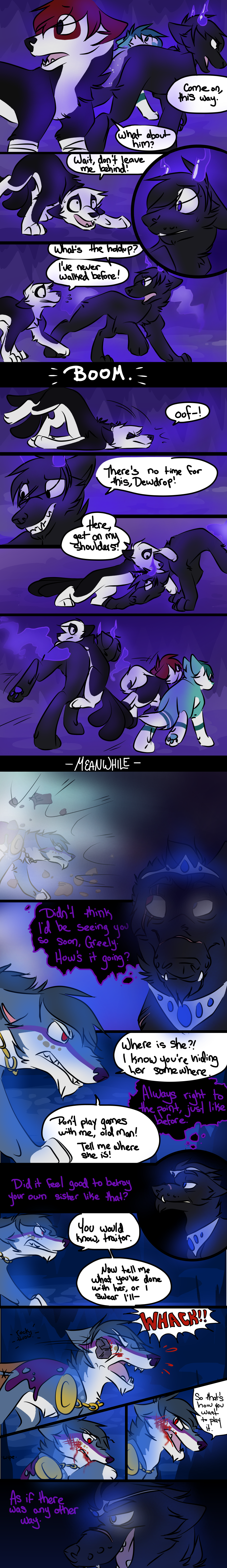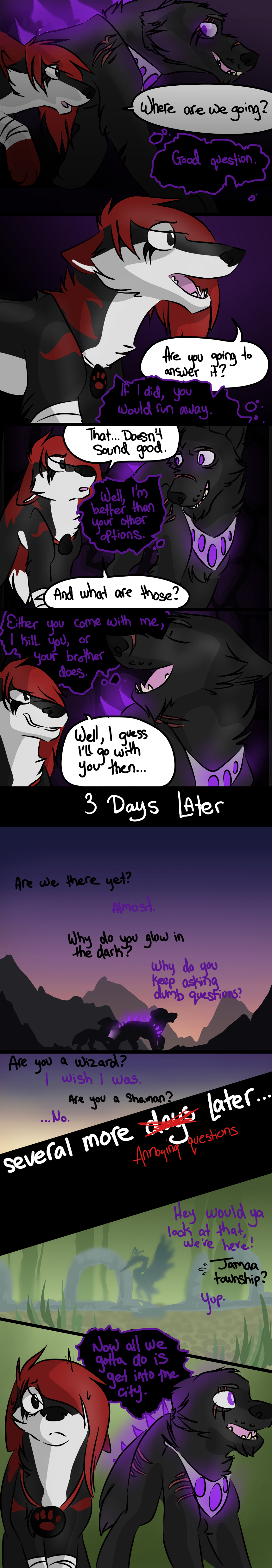 The Beginning of an Era is a webcomic I made based off the game "Animal Jam" and its lore, beginning in 2013 and ending unceremoniously in 2017. The comic that follows bears only tangential resemblance to the game it's based off of, and introduces much more violence and angst than the base game ever even hints at. I made it while I was in high school, just barely figuring myself out through art; you can see my style and writing progress as the pages continue. Although I don't consider the comic to be much good, I put a lot of effort into it back in the day (using my old Windows Vista family computer and MS paint to start with!) and I think it deserves at least a minor archive on my personal website. You can find the entirety of the comic, original captions, interactions, and audience responses and all, on my Deviantart gallery.