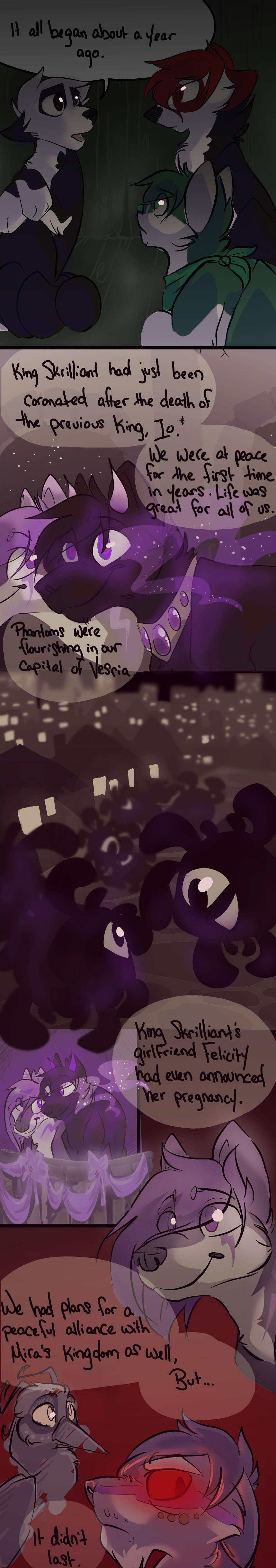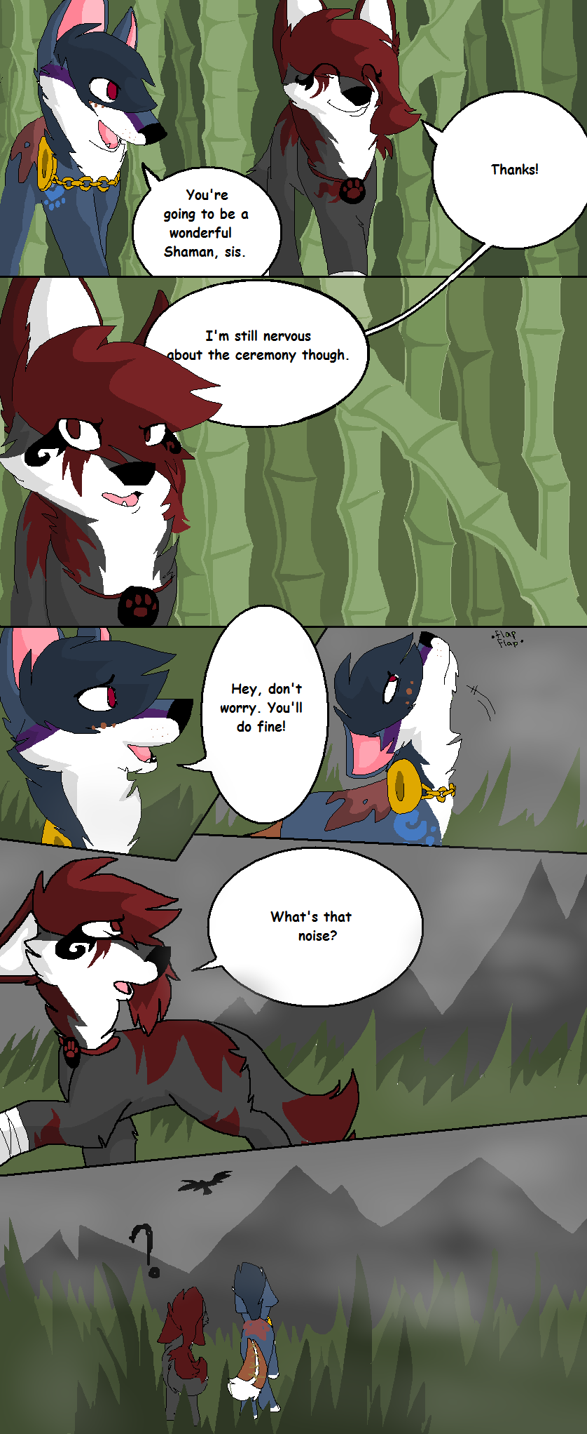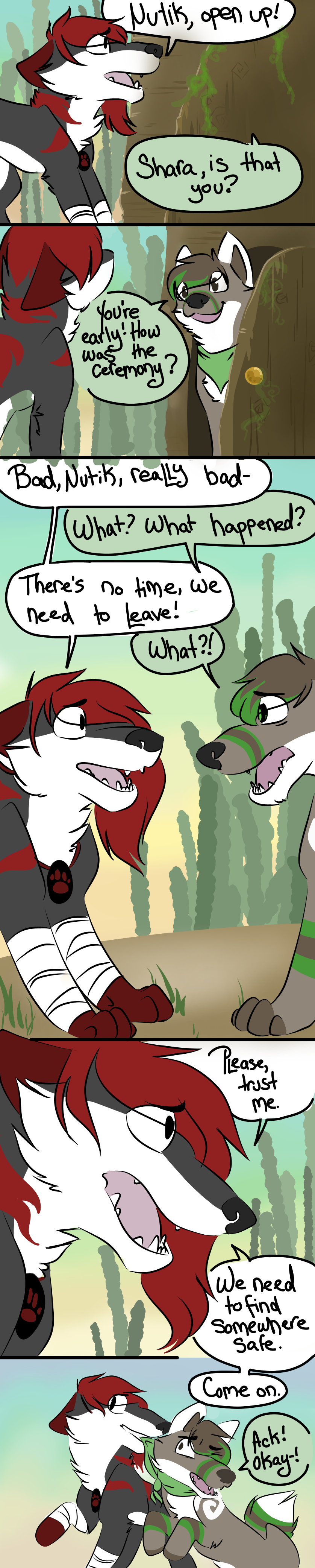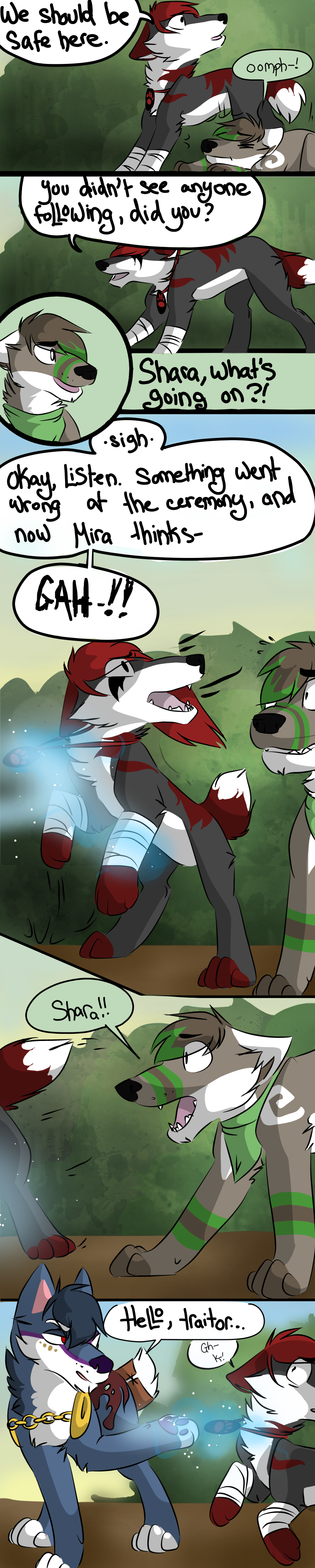 The Beginning of an Era is a webcomic I made based off the game "Animal Jam" and its lore, beginning in 2013 and ending unceremoniously in 2017. The comic that follows bears only tangential resemblance to the game it's based off of, and introduces much more violence and angst than the base game ever even hints at. I made it while I was in high school, just barely figuring myself out through art; you can see my style and writing progress as the pages continue. Although I don't consider the comic to be much good, I put a lot of effort into it back in the day (using my old Windows Vista family computer and MS paint to start with!) and I think it deserves at least a minor archive on my personal website. You can find the entirety of the comic, original captions, interactions, and audience responses and all, on my Deviantart gallery.