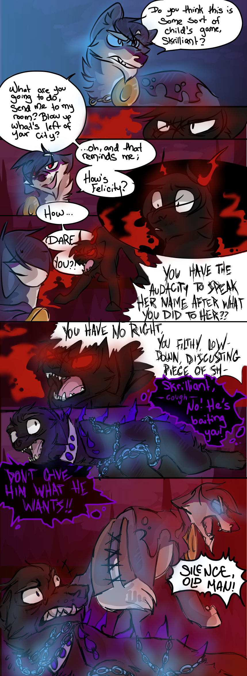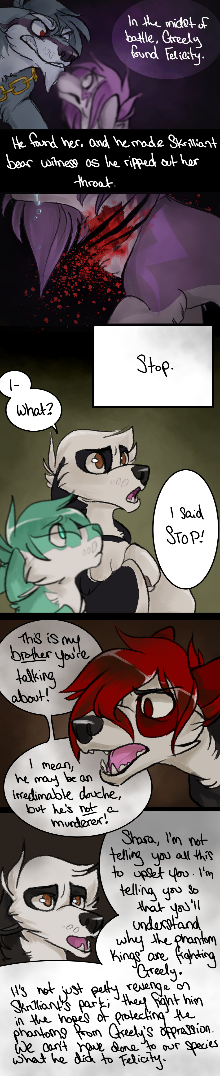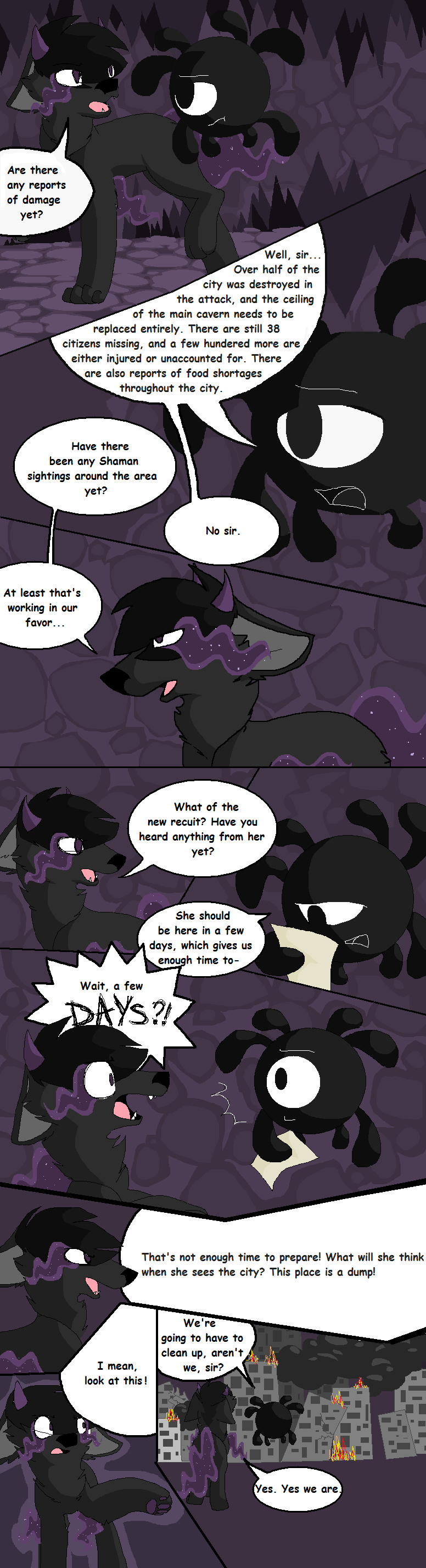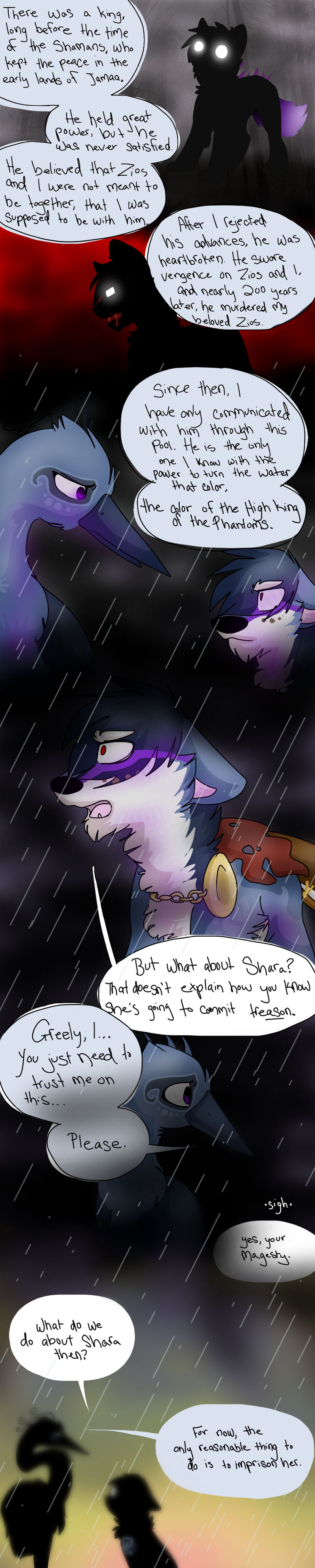 The Beginning of an Era is a webcomic I made based off the game "Animal Jam" and its lore, beginning in 2013 and ending unceremoniously in 2017. The comic that follows bears only tangential resemblance to the game it's based off of, and introduces much more violence and angst than the base game ever even hints at. I made it while I was in high school, just barely figuring myself out through art; you can see my style and writing progress as the pages continue. Although I don't consider the comic to be much good, I put a lot of effort into it back in the day (using my old Windows Vista family computer and MS paint to start with!) and I think it deserves at least a minor archive on my personal website. You can find the entirety of the comic, original captions, interactions, and audience responses and all, on my Deviantart gallery.